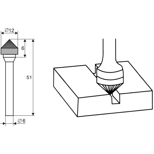 Борфреза Коническая 90 гр. "K" 12х6х6х51, TC Энкор