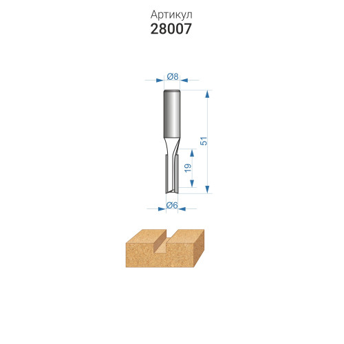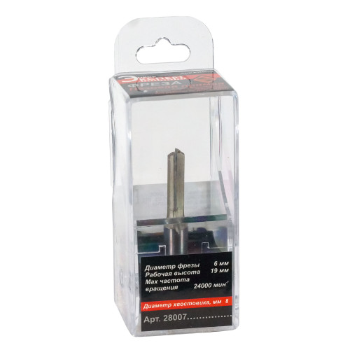 Фреза пазовая прямая ф6x 19 мм хвостовик 8 мм ДСП Энкор 28007