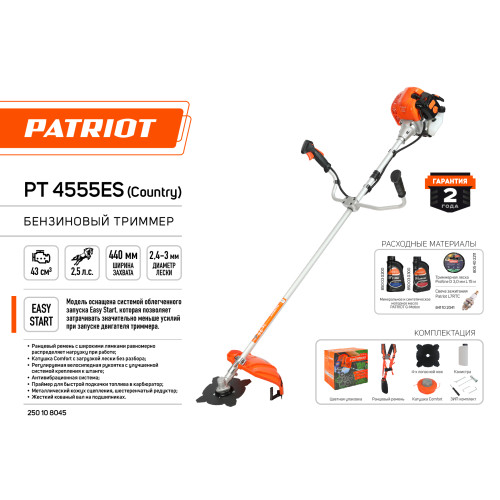 Бензотриммер с неразборной штангой PATRIOT PT 4555ES Country 250108045