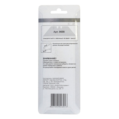 Нож со сменным лезвием трапеция металлический корпус Энкор