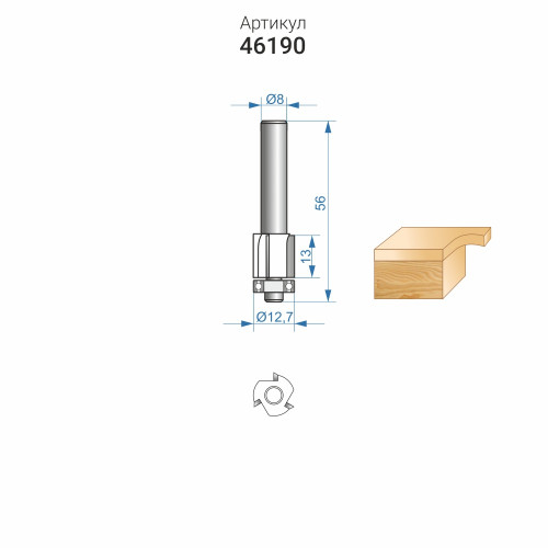 | Диаметр фрезы D, мм | 12.7 |