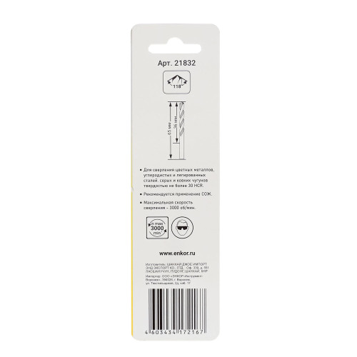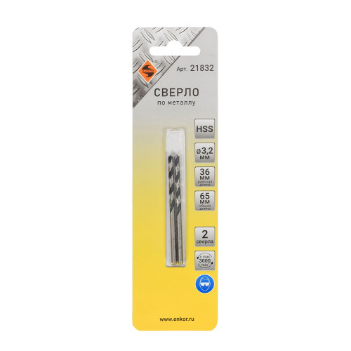 Сверло для металла Энкор 3,2 2шт HSS блистер
