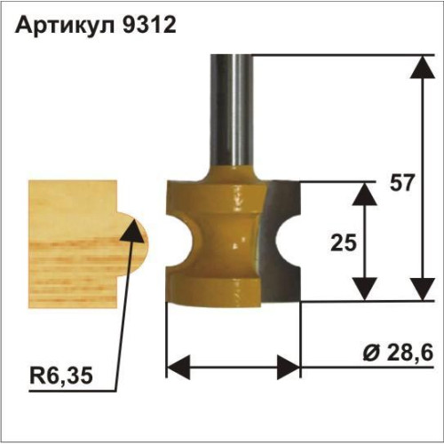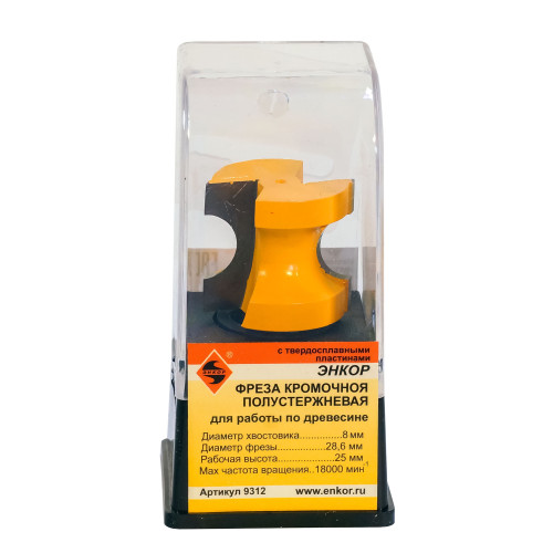 Фреза кромочная полустержневая ф28,6 мм R6,35 мм хвостовик 8 мм Энкор 9312