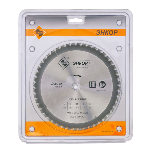 Диск пильный по дереву (190x20 z48) тонкий Энкор 48777