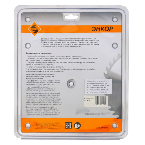 Бренд: Энкор Код товара: 48777 Страна: КНР Диаметр диска, мм: 190 Диаметр посадки, мм: 20